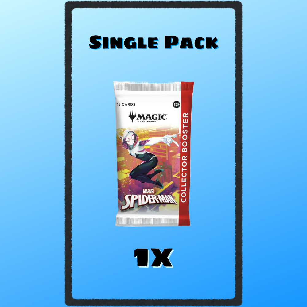 Collector Boosters gather all the coolest cards and foil treatments in one place! Each booster contains Rares and/or Mythics, Traditional Foils, a Borderless basic land, and more. Web-slinging heroes may encounter even more beautiful foils and picture-perfect lands. You could also find the headliner card—the most collectible pull of all!