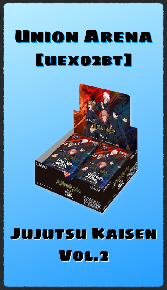 Unleash cursed energy like never before with Union Arena JUJUTSU KAISEN Vol.2 [UEX02BT]! Packed with fierce sorcerers, deadly Domain Expansions, and your favorite characters from Season 2, this booster set cranks up the intensity. Whether you're teaming up with Gojo or diving into Shibuya chaos, power up your deck and dominate the battlefield—Union style!
